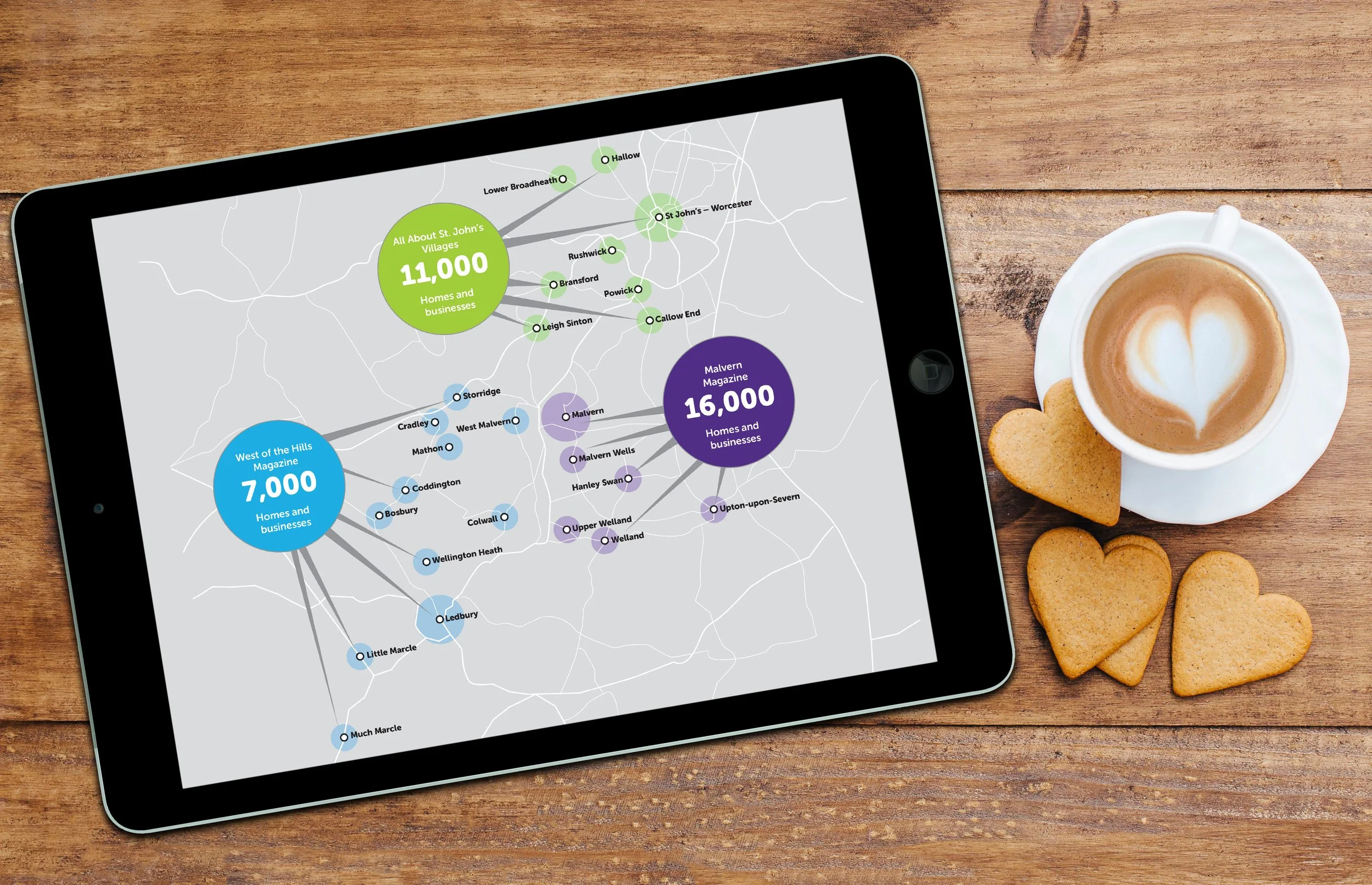 Spanning the area West of the Malvern Hills, Malvern all the to Upton-upon-Severn, the villages between Worcester and Malvern and the St John’s area of Worcester, the local catchment offers a wide range of opportunities to connect with and promote to local people and businesses.